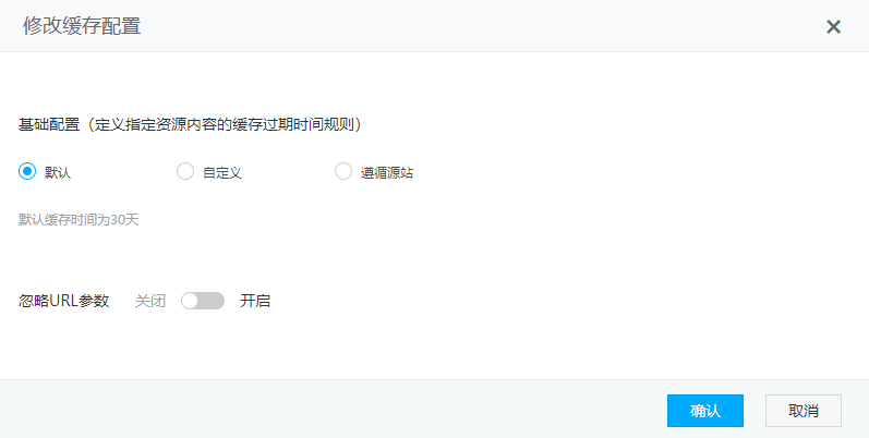操作说明缓存过期配置是指配置 CDN 加速节点在缓存您的业务内容时遵循的一套过期规则 登录,进入控制台->CDN->域名管理->配置->缓存配置 ![]() 修改配置 ![]() 缓存的基础配置分为默认、自定义、遵循源站三种类型
